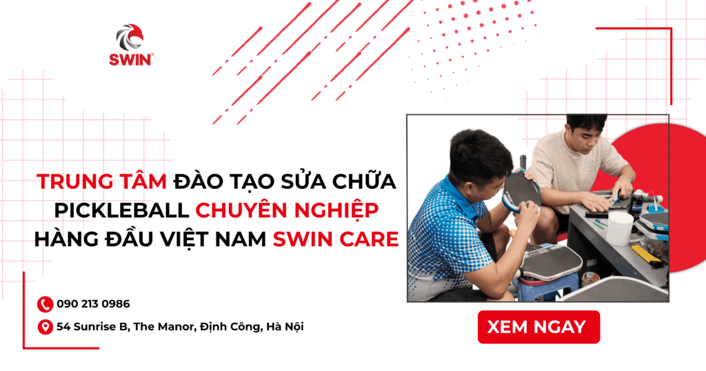 Chọn Trung tâm đào tạo Pickleball Swin Care — bắt đầu học thực hành, làm chủ kỹ thuật sửa chữa vợt & giày và khởi nghiệp ngay.