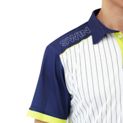 Điểm nổi bật của Swin Vertu là họa tiết sọc dọc trên thân áo. Chi tiết này giúp tổng thể trông cân đối hơn. Người mặc cũng cảm thấy dáng gọn và cao hơn. Form polo cổ bẻ tạo cảm giác lịch sự. Áo có thể dùng khi chơi thể thao hoặc đi ra ngoài.