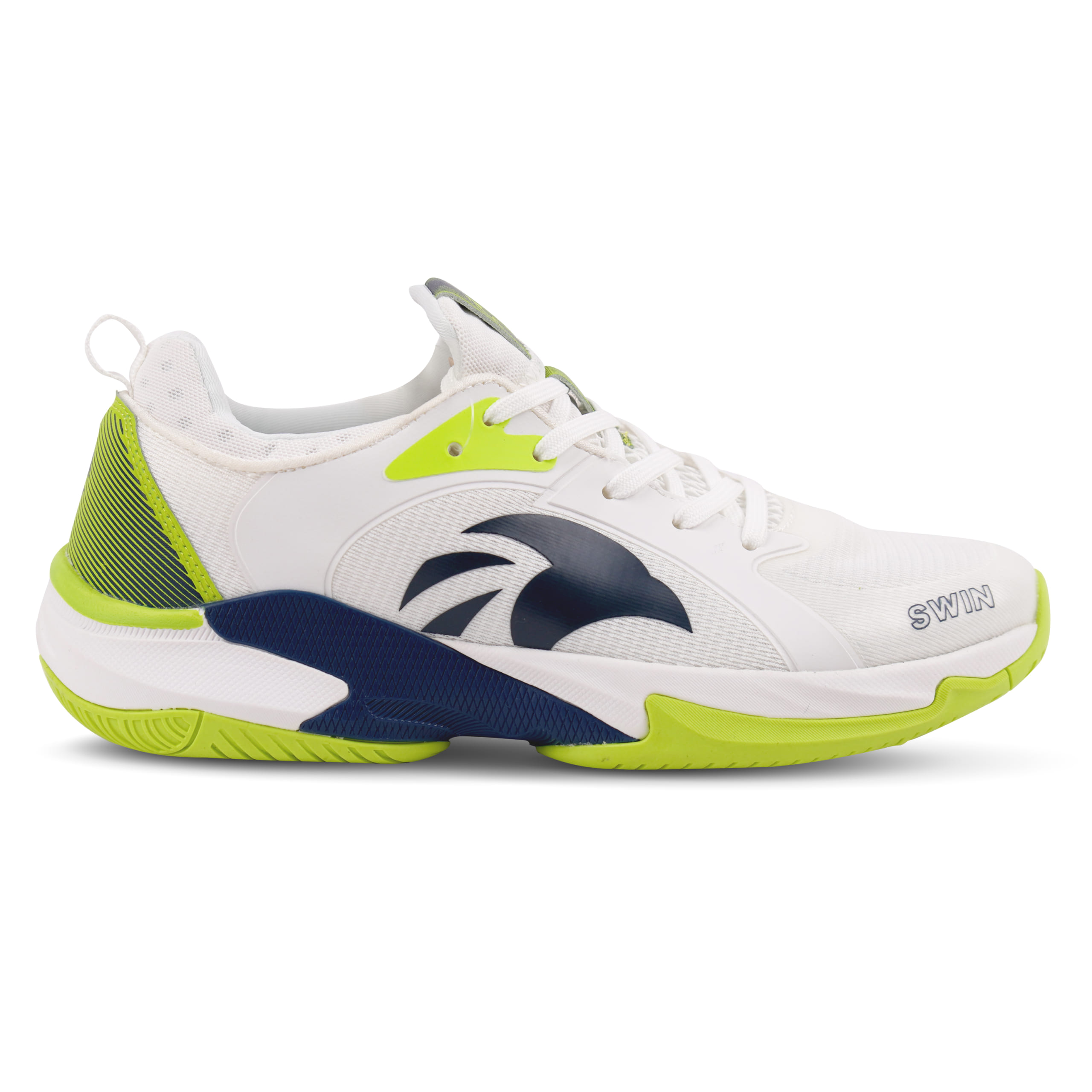 Giày Pickleball Swin Nevera (Trắng) – thiết kế chuyên biệt cho vận động ngoài trời: đế 3 lớp siêu bám, thân giày TPU chống trầy & giữ form. Dành cho người chơi pickleball, tennis, cầu lông sân cứng cần tốc độ và độ ổn định.